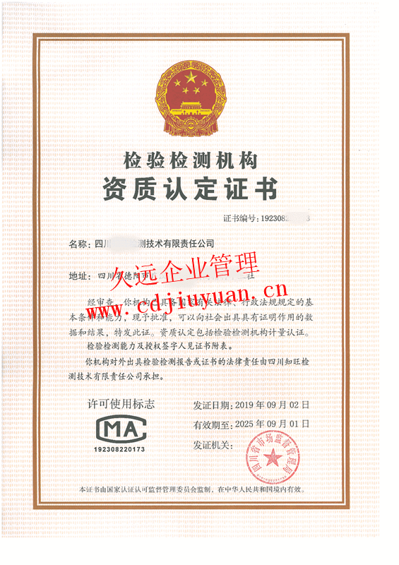 檢驗(yàn)檢測機(jī)構(gòu)資質(zhì)認(rèn)定證書(CMA)